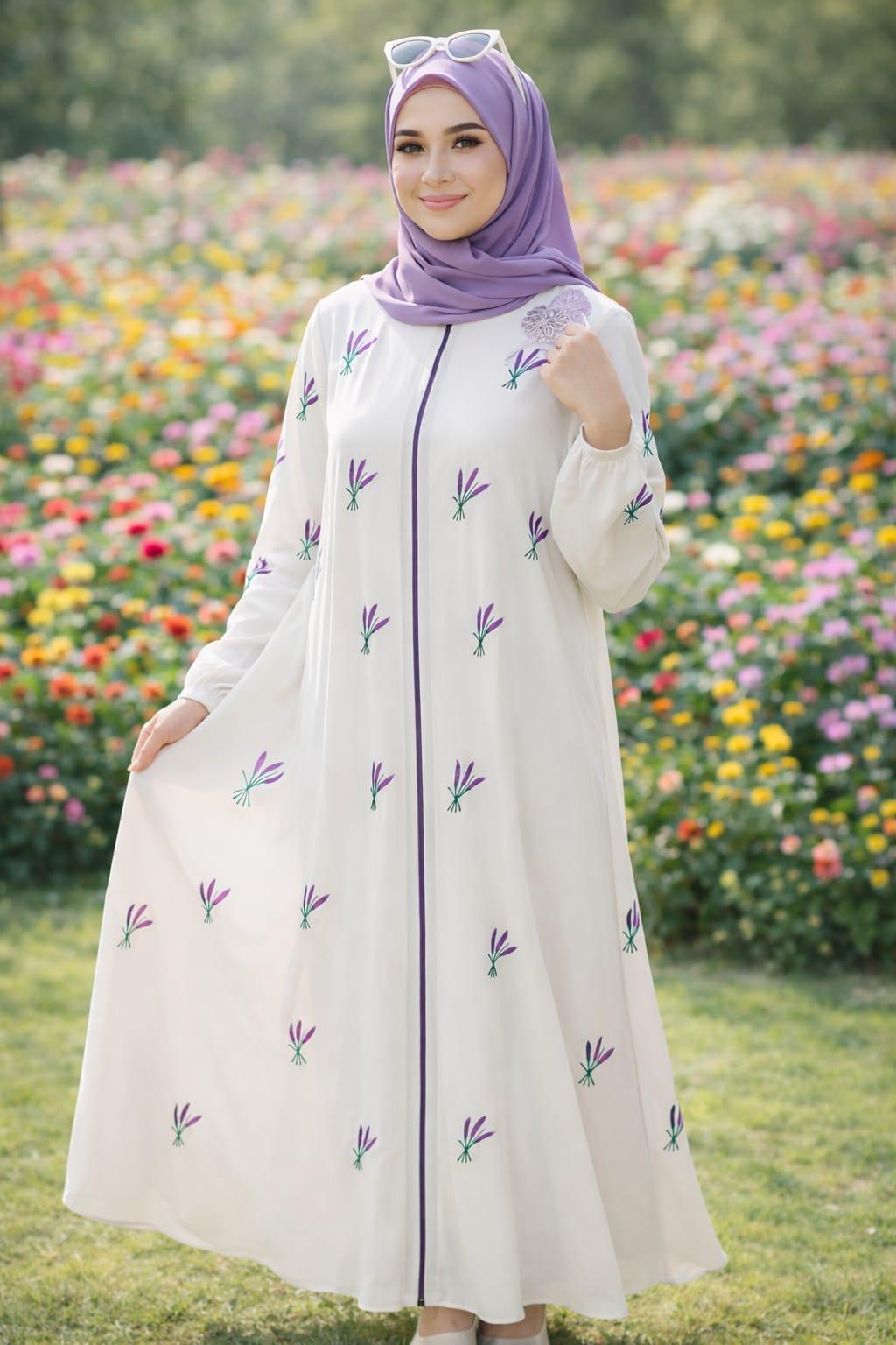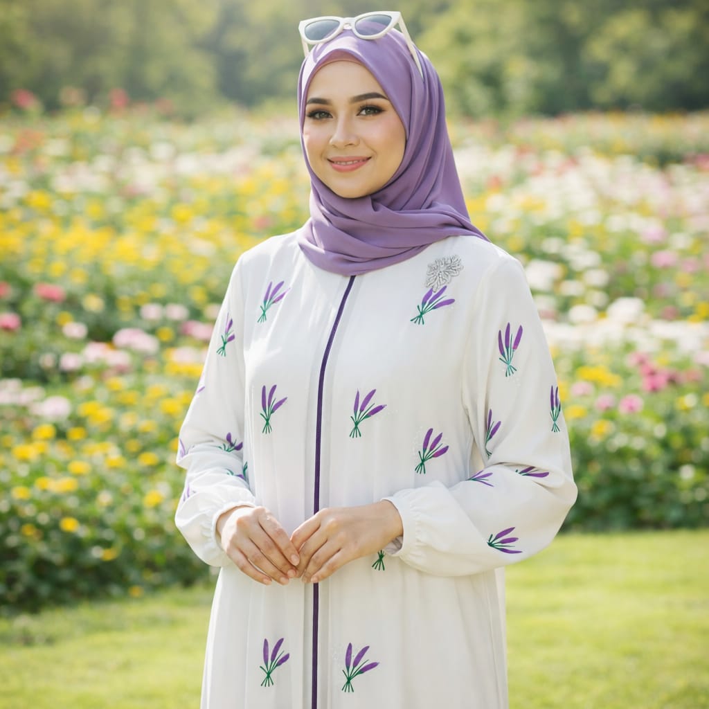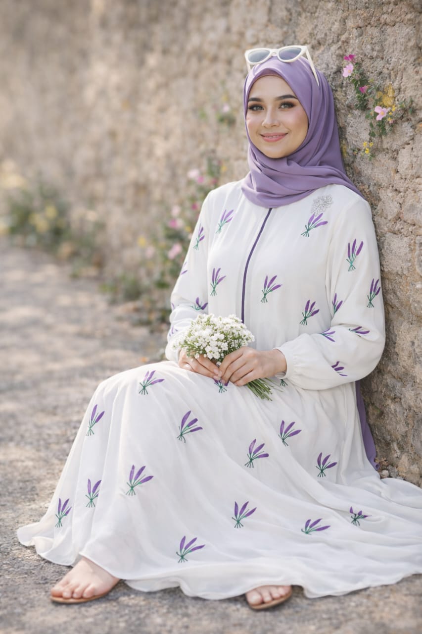 ম্যাচিং লং হিজাব, যার মাপ ৮০/৩০ ইঞ্চি — যা স্টাইলের সাথে পুরোপুরি কাভারেজ দেয়।