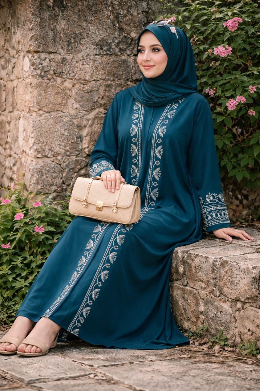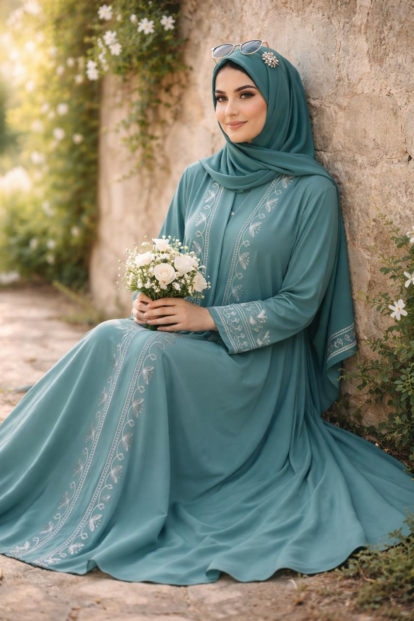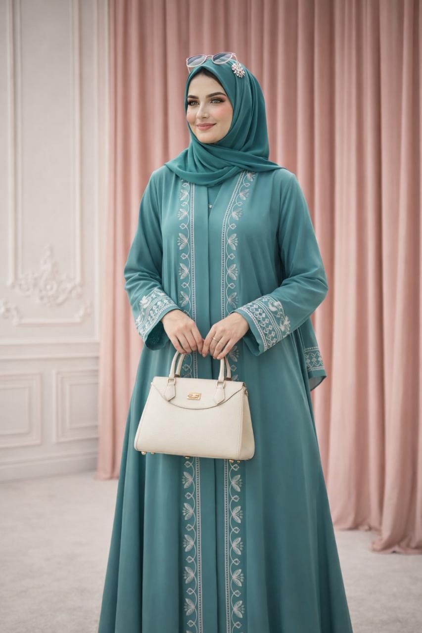 ম্যাচিং লং হিজাব, যার মাপ ৮০/৩০ ইঞ্চি — যা স্টাইলের সাথে পুরোপুরি কাভারেজ দেয়।