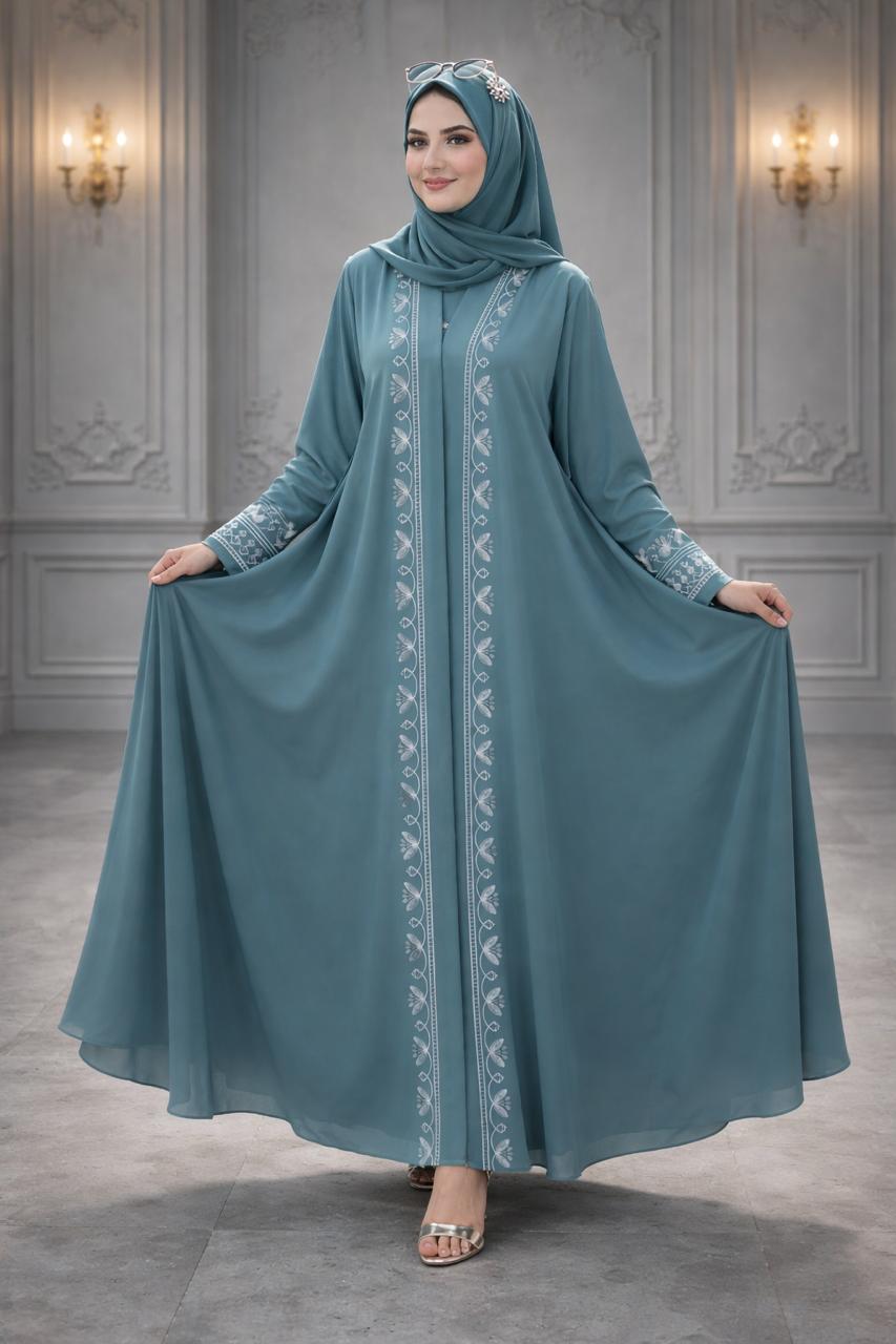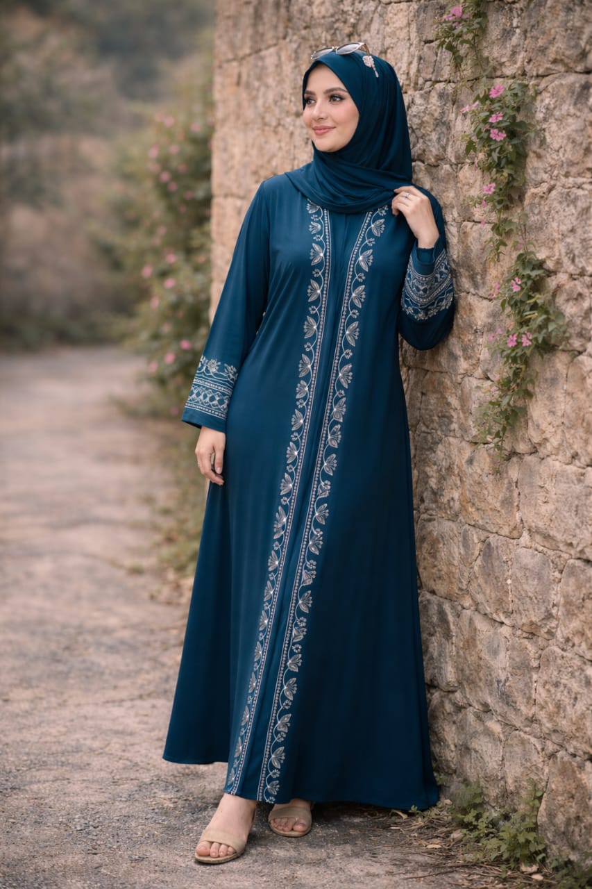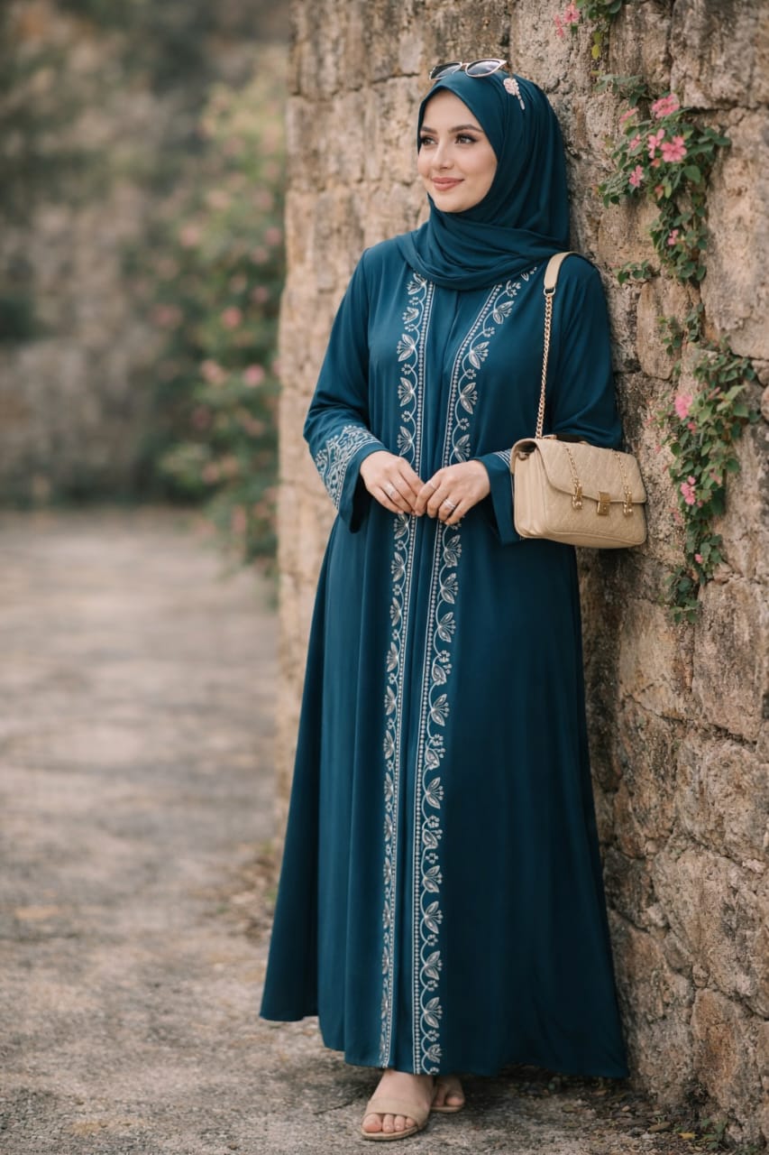 ম্যাচিং লং হিজাব, যার মাপ ৮০/৩০ ইঞ্চি — যা স্টাইলের সাথে পুরোপুরি কাভারেজ দেয়।